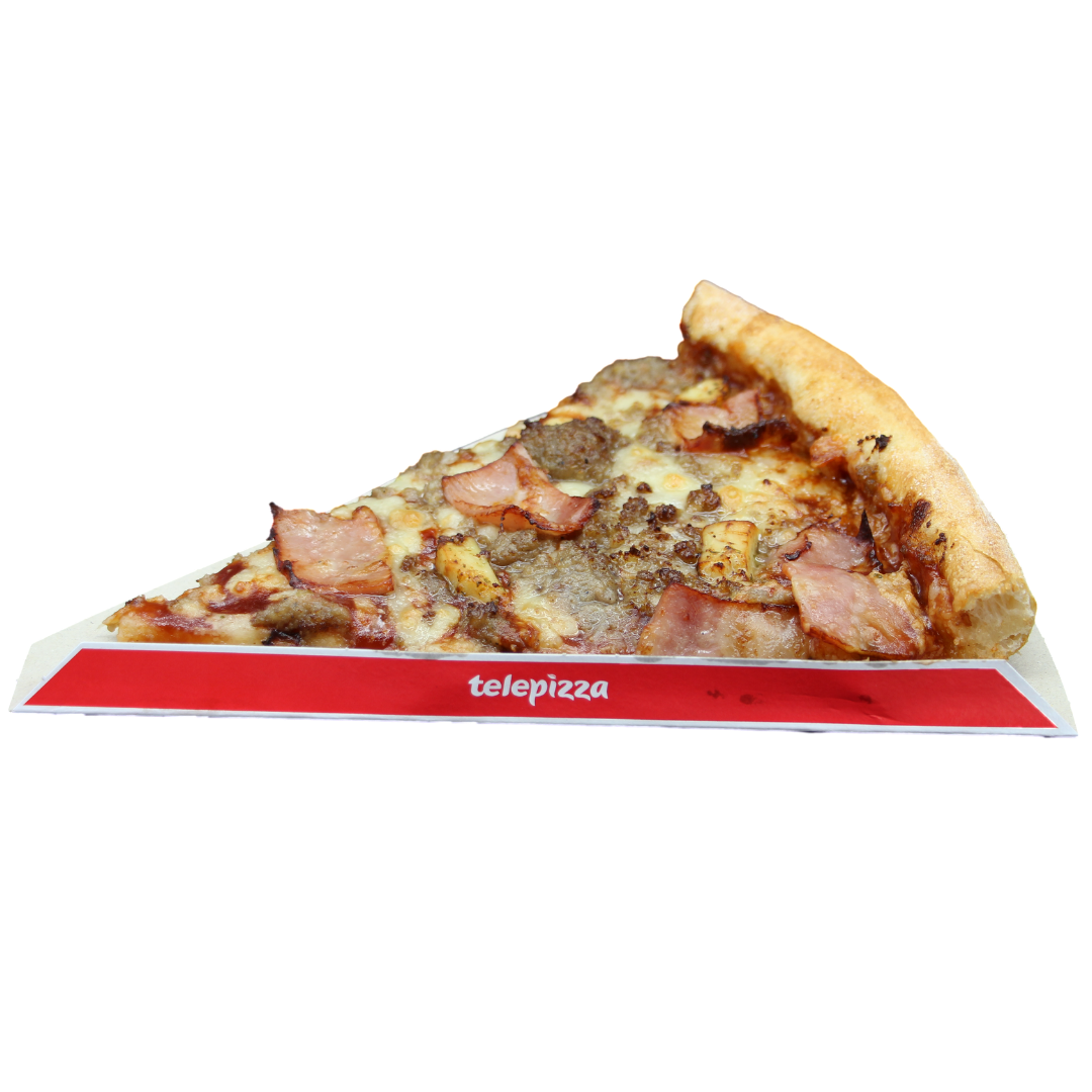 Masa de pizza, carne picada, salsa barbacoa, queso, pollo y bacon. 2 OPCIONES: tomate, queso y jamón de york