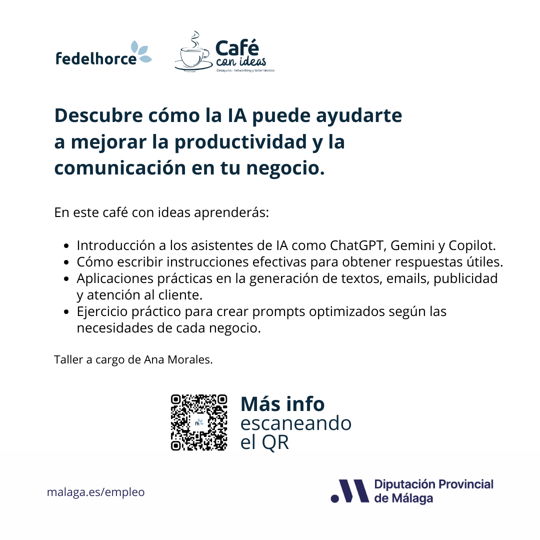 En este café con ideas descubrirás cómo la Inteligencia Artificial puede convertirse en una aliada real para tu empresa, independientemente de su tamaño o sector.