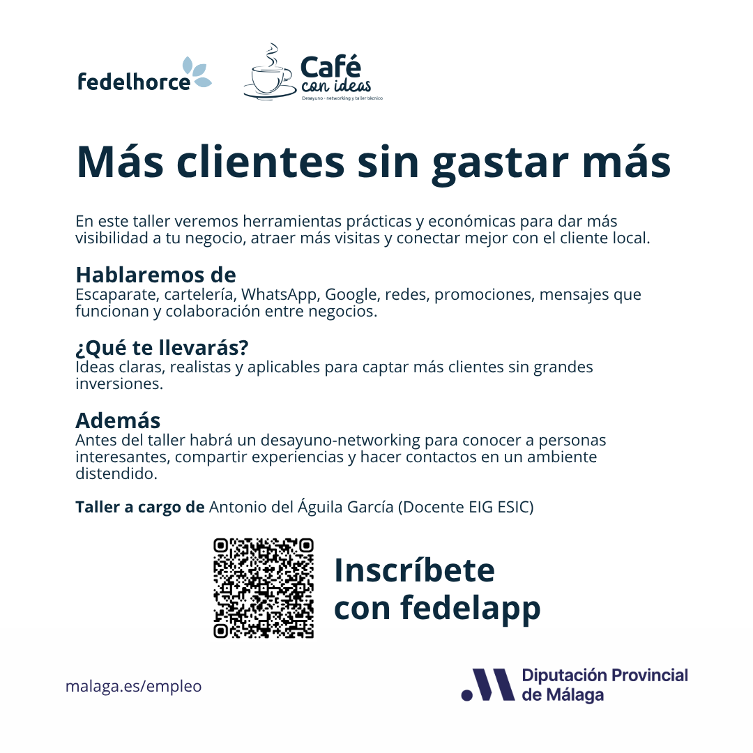 En este taller veremos herramientas prácticas y económicas para dar más visibilidad a tu negocio, atraer más visitas y conectar mejor con el cliente local.