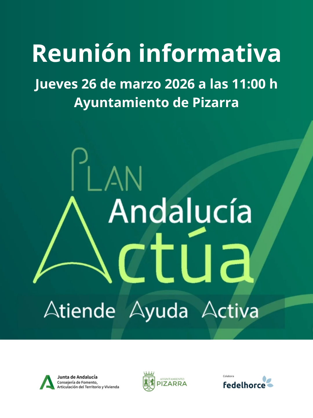 Con motivo de la puesta en marcha del paquete de medidas del Plan Andalucía Actúa, cuyo proyecto de Orden fue publicado en el BOJA el pasado 18 de marzo de 2026, se están organizando distintas sesiones informativas en las zonas más afectadas por los recientes fenómenos meteorológicos adversos en Andalucía.